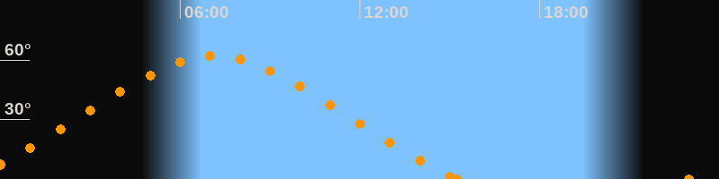 Höchster Stand (Kulmination)07:08 Uhr (h = 62°)
