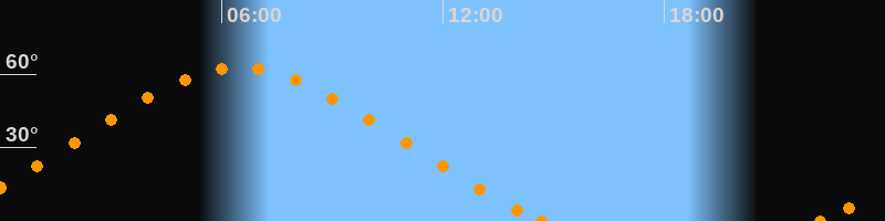 Höchster Stand (Kulmination)06:27 Uhr (h = 62.7°)