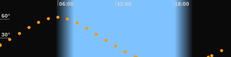 Höchster Stand (Kulmination)05:55 Uhr (h = 63°)