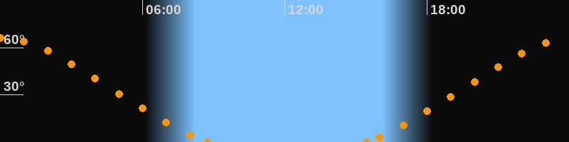 Höchster Stand (Kulmination)00:03 Uhr (h = 66.1°)