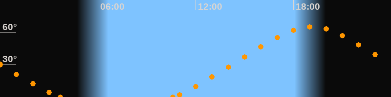 Höchster Stand (Kulmination)19:06 Uhr (h = 65.4°)