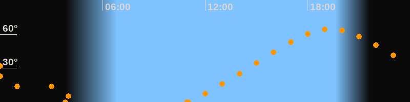 Höchster Stand (Kulmination)19:21 Uhr (h = 64.6°)