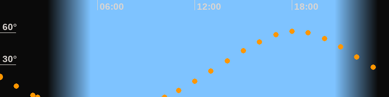 Höchster Stand (Kulmination)18:11 Uhr (h = 61.4°)
