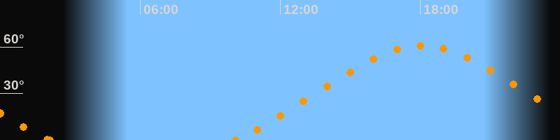 Höchster Stand (Kulmination)18:05 Uhr (h = 60.9°)