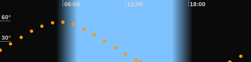 Höchster Stand (Kulmination)05:43 Uhr (h = 58.3°)