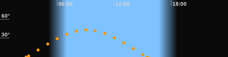 Höchster Stand (Kulmination)09:05 Uhr (h = 43.3°)