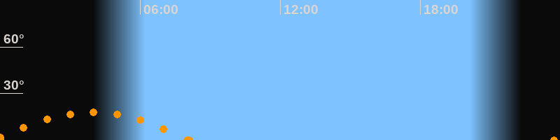 Aufgang23:43 Uhr im Südosten (αAz = 124.3°)