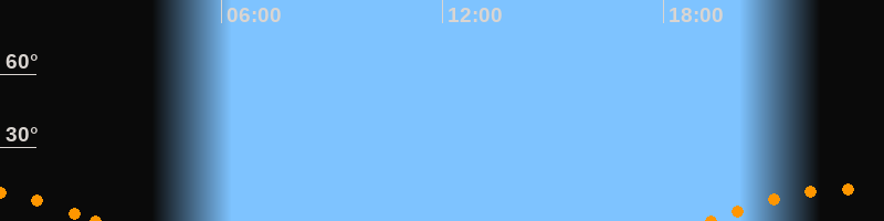 Aufgang19:17 Uhr im Südosten (αAz = 133.3°)