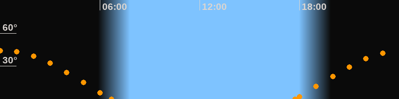 Höchster Stand (Kulmination)00:09 Uhr (h = 44.3°)