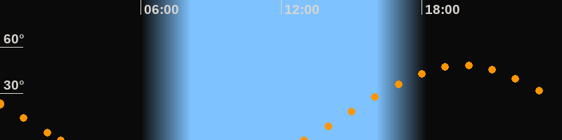 Höchster Stand (Kulmination)19:45 Uhr (h = 48.1°)