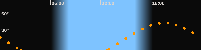 Höchster Stand (Kulmination)19:34 Uhr (h = 48.7°)