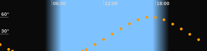 Höchster Stand (Kulmination)17:30 Uhr (h = 60.3°)