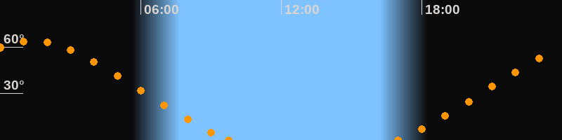 Höchster Stand (Kulmination)01:25 Uhr (h = 64.1°)