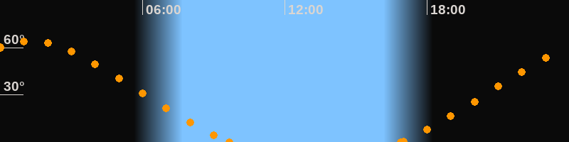 Höchster Stand (Kulmination)01:19 Uhr (h = 64.1°)