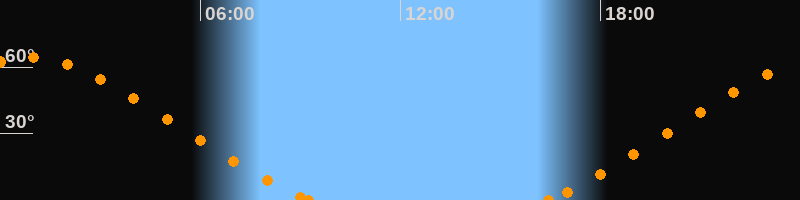 Höchster Stand (Kulmination)00:46 Uhr (h = 64.2°)