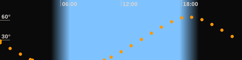 Höchster Stand (Kulmination)18:45 Uhr (h = 64.7°)