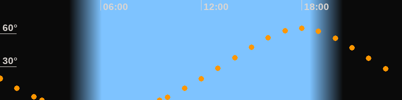Höchster Stand (Kulmination)17:58 Uhr (h = 64.8°)