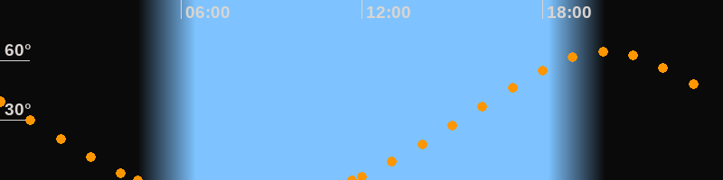 Höchster Stand (Kulmination)20:06 Uhr (h = 64.5°)