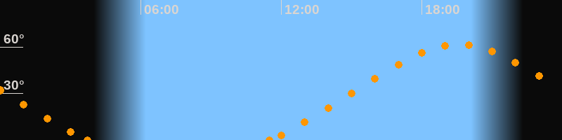 Höchster Stand (Kulmination)19:35 Uhr (h = 61.7°)