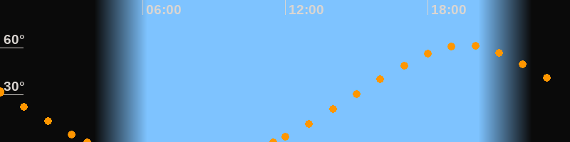 Höchster Stand (Kulmination)19:33 Uhr (h = 61.6°)
