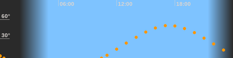 Untergang00:24 Uhr im Westen (αAz = 288.6°)