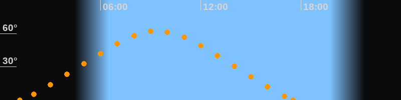 Höchster Stand (Kulmination)09:22 Uhr (h = 62.3°)