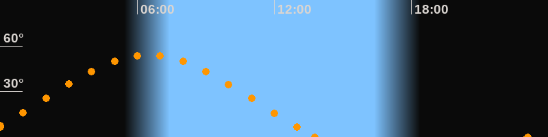 Höchster Stand (Kulmination)06:28 Uhr (h = 54.3°)