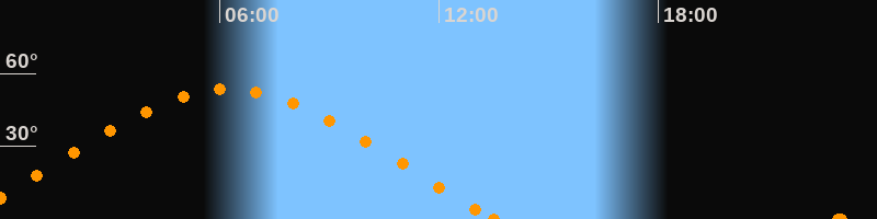 Höchster Stand (Kulmination)06:14 Uhr (h = 53.5°)
