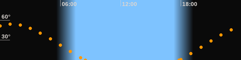 Höchster Stand (Kulmination)01:12 Uhr (h = 53.9°)