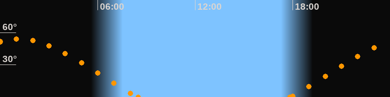 Höchster Stand (Kulmination)01:12 Uhr (h = 53.9°)