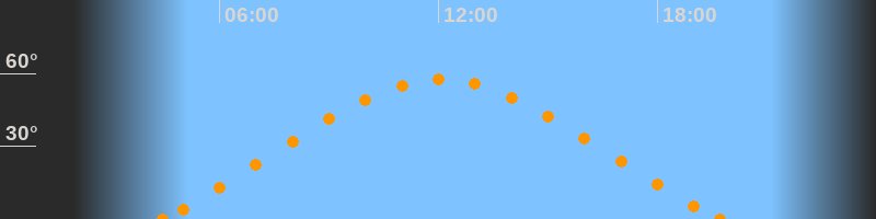 Höchster Stand (Kulmination)12:04 Uhr (h = 57.5°)