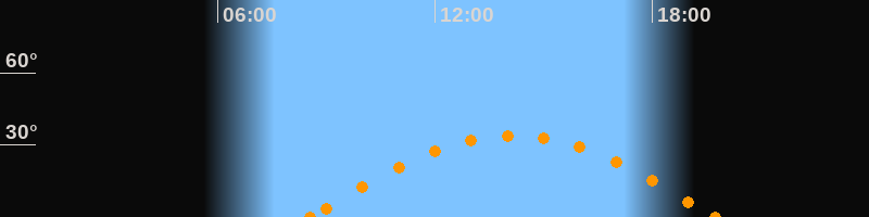 Höchster Stand (Kulmination)14:09 Uhr (h = 33.9°)