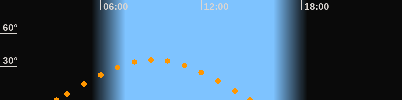 Höchster Stand (Kulmination)09:07 Uhr (h = 36.2°)