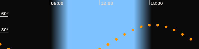 Höchster Stand (Kulmination)18:31 Uhr (h = 44.9°)