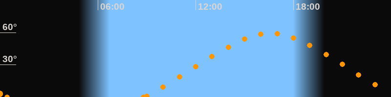 Höchster Stand (Kulmination)16:38 Uhr (h = 59.3°)