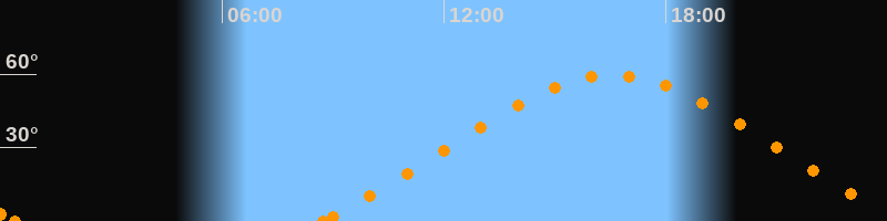 Höchster Stand (Kulmination)16:35 Uhr (h = 59.6°)
