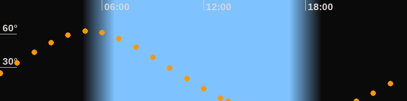 Höchster Stand (Kulmination)05:15 Uhr (h = 62.6°)