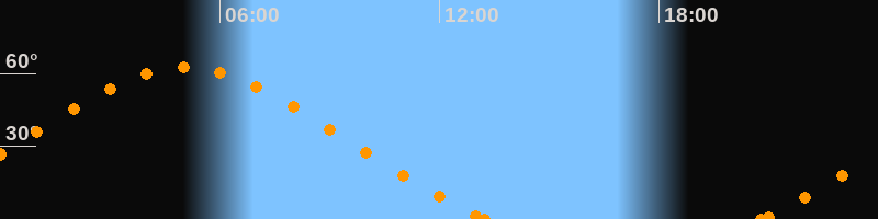 Höchster Stand (Kulmination)05:02 Uhr (h = 62.6°)