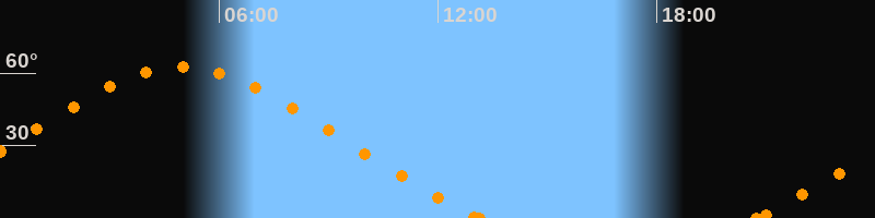 Höchster Stand (Kulmination)04:57 Uhr (h = 62.6°)