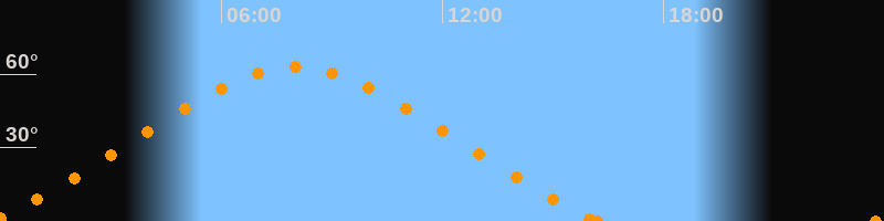Höchster Stand (Kulmination)08:00 Uhr (h = 62.8°)