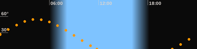 Höchster Stand (Kulmination)04:25 Uhr (h = 54.7°)