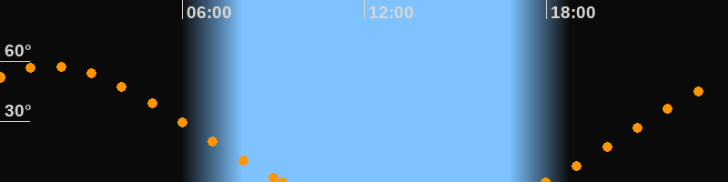 Höchster Stand (Kulmination)01:41 Uhr (h = 57.4°)