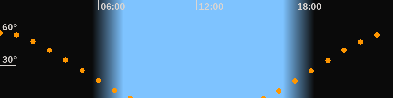 Höchster Stand (Kulmination)23:58 Uhr (h = 60.1°)