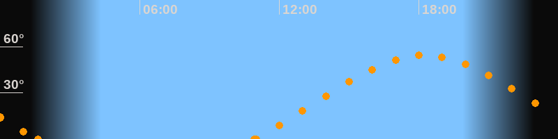 Höchster Stand (Kulmination)18:15 Uhr (h = 54.4°)