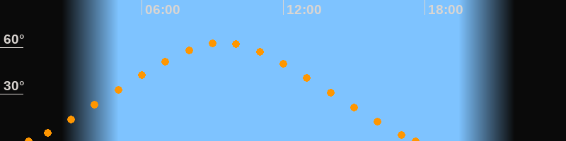 Höchster Stand (Kulmination)09:23 Uhr (h = 62.8°)