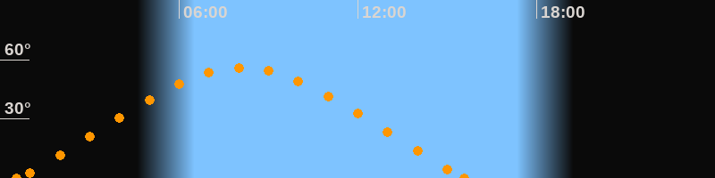 Höchster Stand (Kulmination)08:05 Uhr (h = 56°)