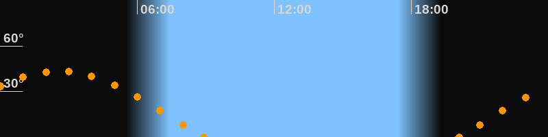 Höchster Stand (Kulmination)02:33 Uhr (h = 43.3°)
