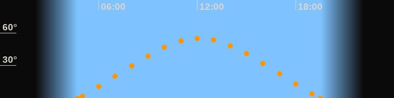Höchster Stand (Kulmination)12:06 Uhr (h = 55°)