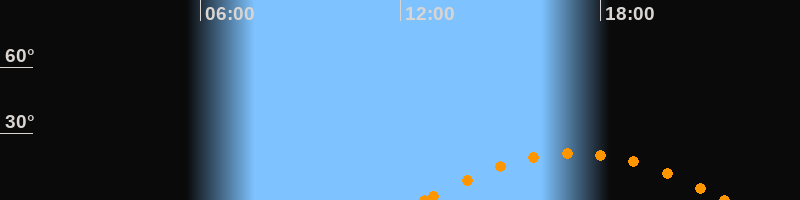 Aufgang12:43 Uhr im Südosten (αAz = 118.6°)