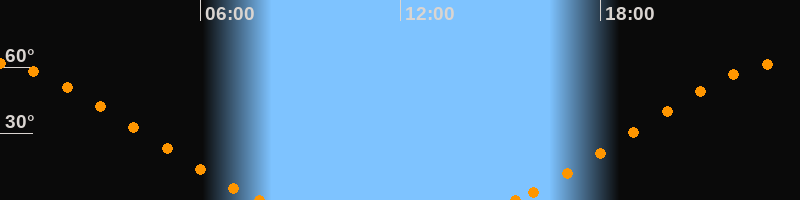 Höchster Stand (Kulmination)23:34 Uhr (h = 62.1°)